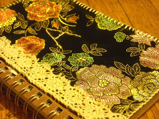 It started with a new journal! It's actually an old sketchbook; I never used it though, so I raided my fabric stash and made a new cover for it, and found some stamps and ink to number the pages.